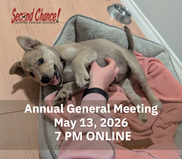 Second Chance Animal Rescue Society (SCARS) will be conducting the 2026 Annual General Meeting (AGM) on May 13, 2026 at 7 p.m. online via Zoom. This will be an online-only event.
