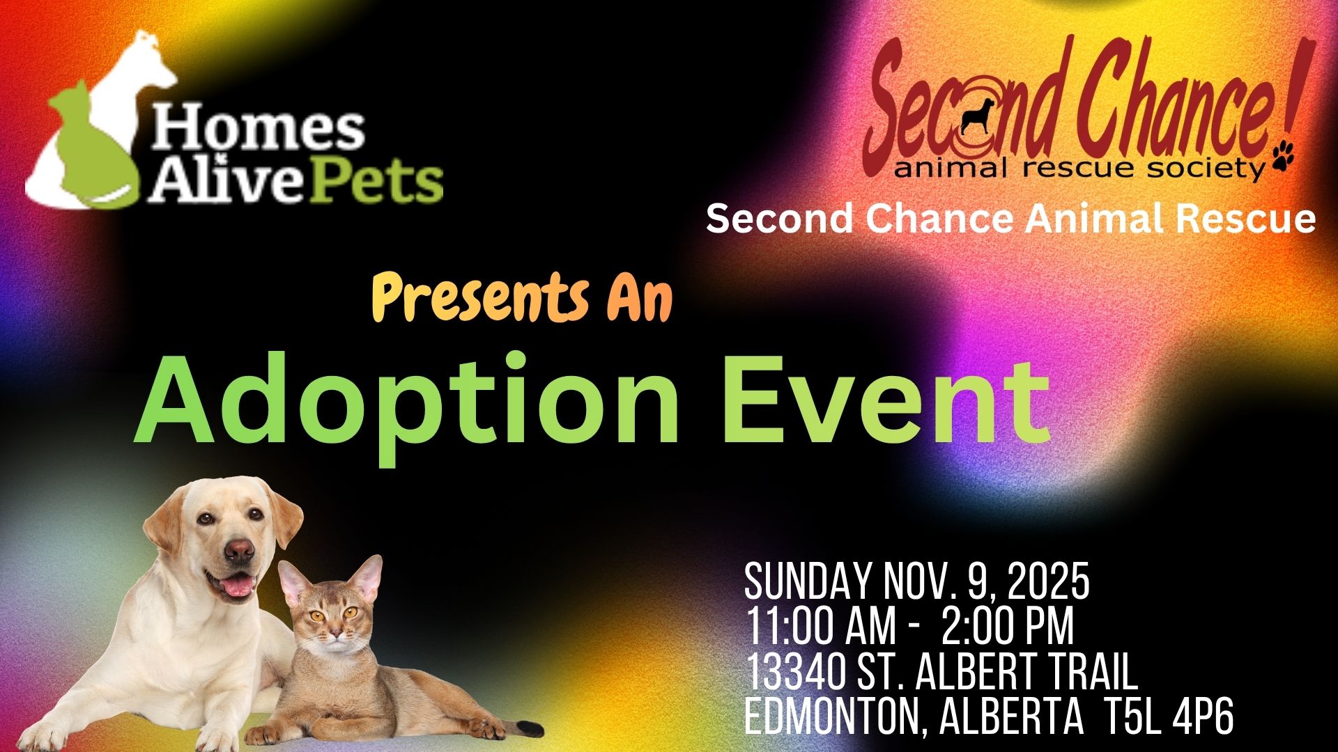 You are invited to the SCARS’ Adoption Event at Homes Alive Pets (13340 St Albert Trail Edmonton). Come on down and meet some of our amazing adoptable animals.