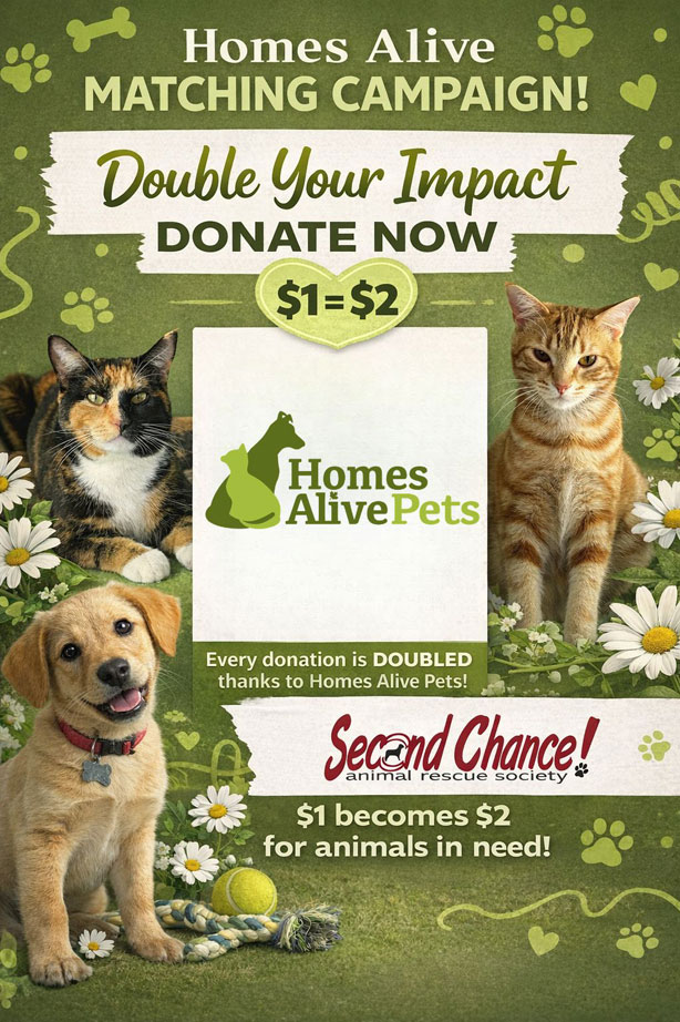 Thanks to Homes Alive Pets, your donation is Doubled!