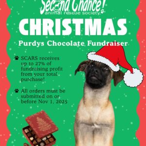 - 24Christmas Purdys Chocolate FundraiserAll DaySweeten the season and support rescue animals! SCARS is teaming up with Purdys Chocolatier for a delicious holiday fundraiser! Place your order by November 1 and help SCARS earn up to 27% profit from every dollar you spend (before taxes). All going toward rescue efforts and animal care Pick-up available in: Edmonton , ...Maisie’s House 2025SCARS has paired with Maisie's House this Holiday Season! Please visit Maisie's House for the fantastic view! To contribute to Maisie's House, see our Give page here: https://scars.givecloud.co/items/maisies2025 , ...Online Auction – The Good, the Glad and the Snuggly!All Day[et_pb_section fb_built="1" _builder_version="4.27.4" _module_preset="default" global_colors_info="{}"][et_pb_row _builder_version="4.27.4" _module_preset="default" global_colors_info="{}"][et_pb_column type="4_4" _builder_version="4.27.4" _module_preset="default" global_colors_info="{}"][et_pb_text _builder_version="4 , ...“Online” Foster Home Volunteer SessionsSCARS is looking for new volunteer foster homes for dogs, cat, puppies and kittens. This session is strictly for those interested in becoming a foster home for SCARS. This is a family-friendly event! Attending does not obligate you to foster but will give you an inside look at what the program offers. If you have any q , ...