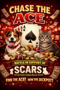 SCARS is looking for new volunteer foster homes for dogs, cat, puppies and kittens. This session is strictly for those interested in becoming a foster home for SCARS. This is a family-friendly event! Attending does not obligate you to foster but will give you an inside look at what the program offers. If you have any q , ... - 24Chase the Ace Raffle 2026